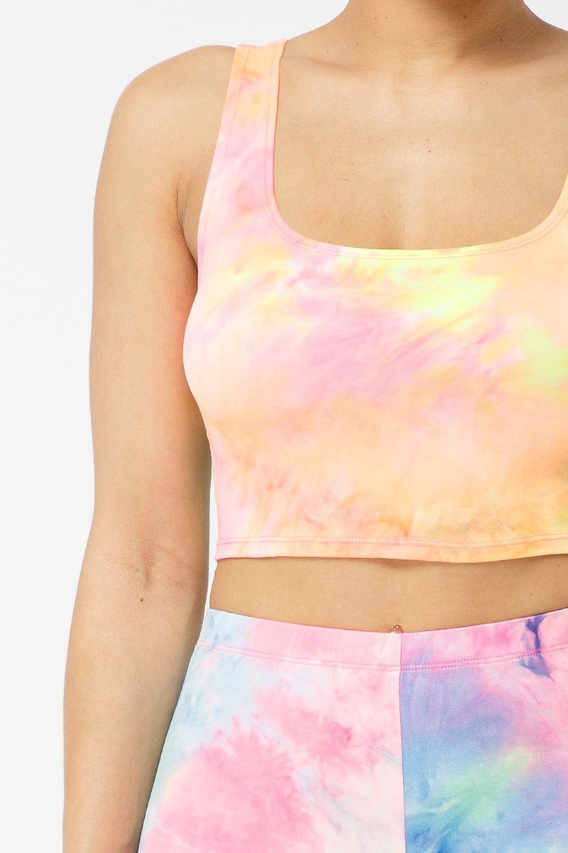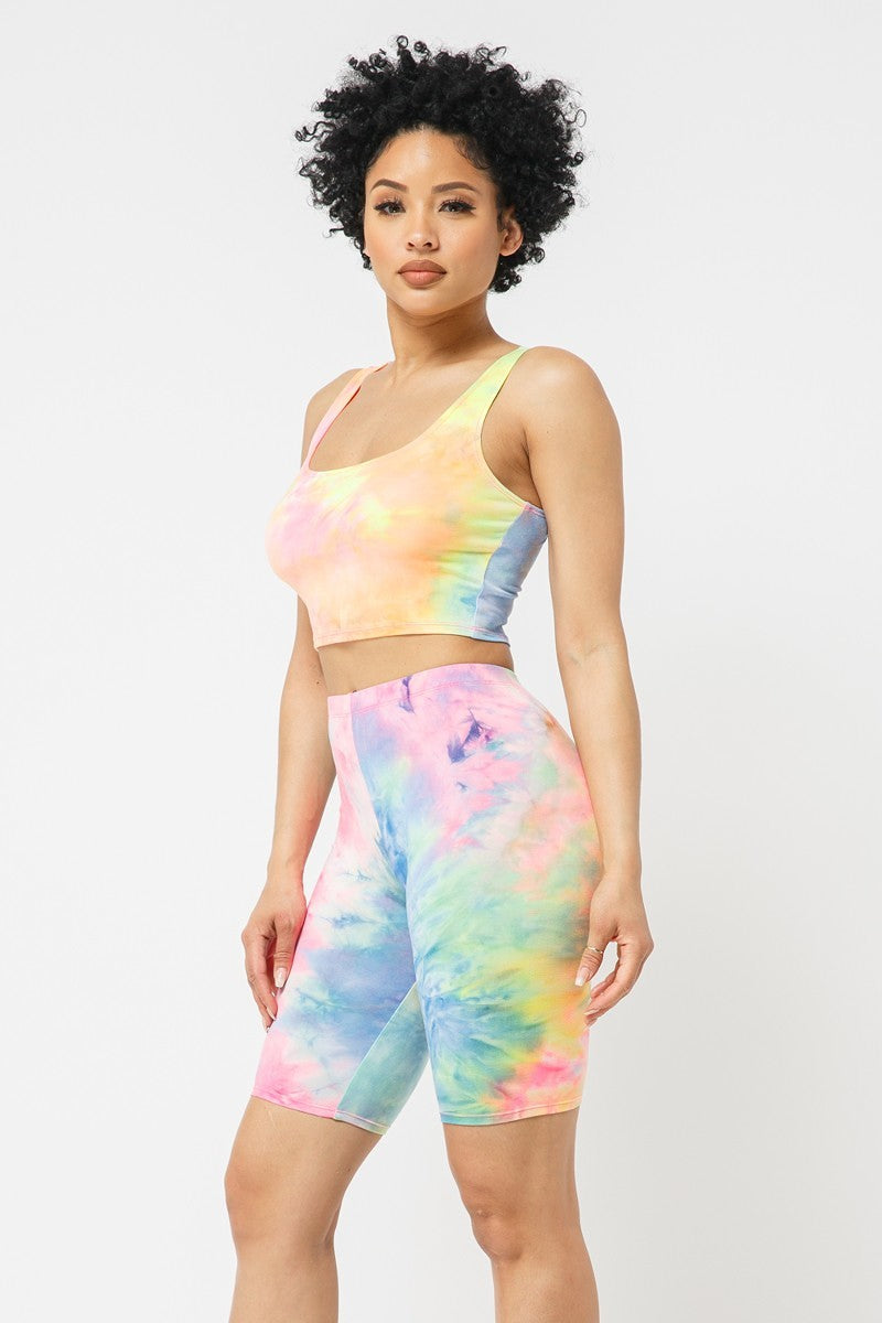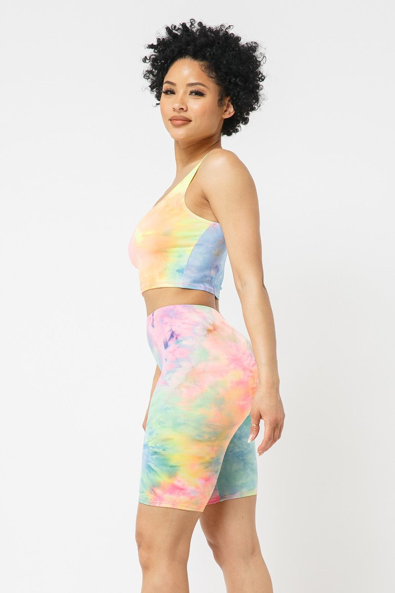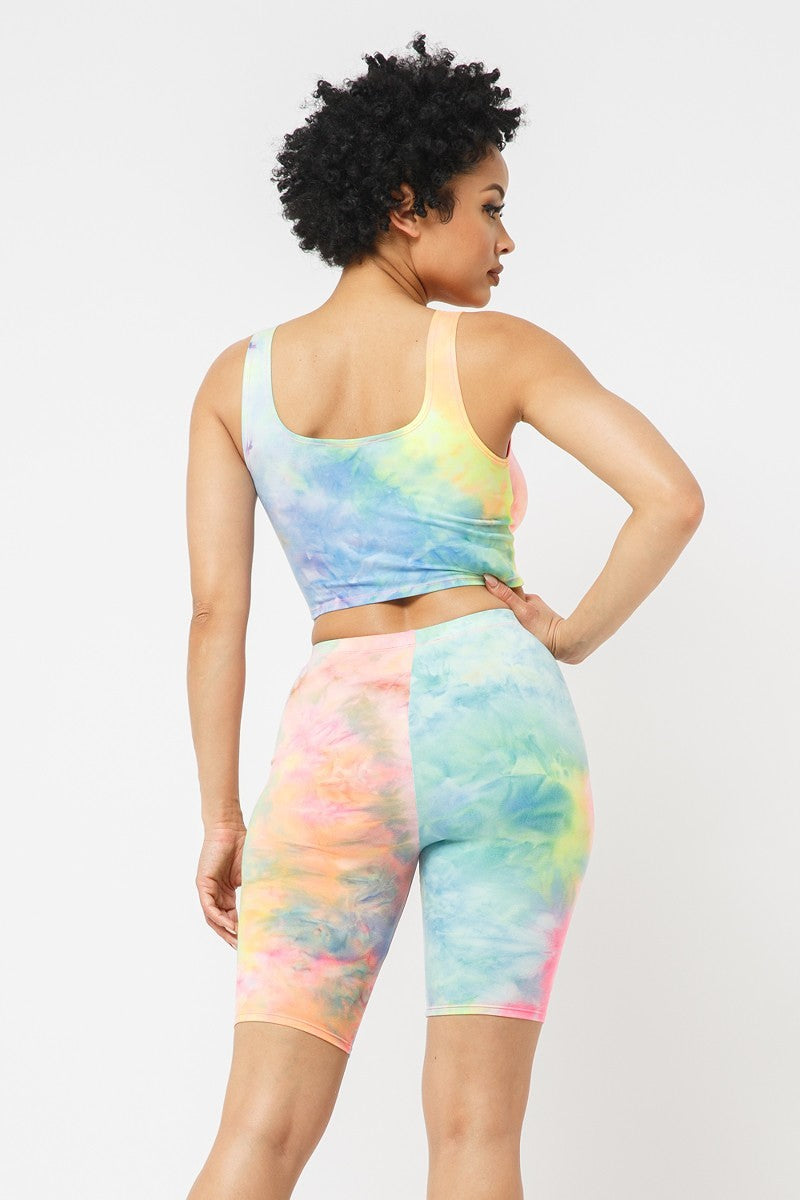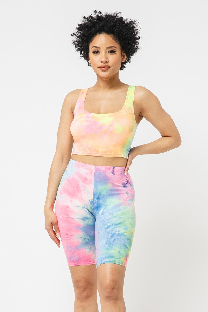 Brushed Tie dye tank top and biker shorts set